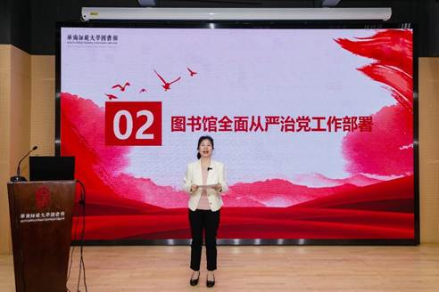 党总支纪检委员王玉波部署图书馆全面从严治党工作。她指出,要深入学习贯彻习近平总书记关于党的建设的重要思想,开展好树立和践行正确政绩观学习教育,落实全面从严治党主体责任,组织开展纪律教育月和师德师风建设,加强监督管理,推进正风肃纪,以全面从严治党新成效为图书馆的发展提供坚强保障。