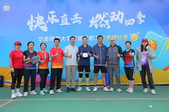 在2025年12月20日至21日举行的华南师范大学首届教职工匹克球比赛中,图书馆代表队凭借出色的团队协作与顽强拼搏精神,从22支参赛队伍中脱颖而出,最终与体育科学学院代表队并列冠军,为图书馆争得荣誉。